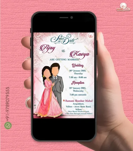 Caricature Based Cards, Digital Card/PDF, North Indian Cards, Save the date invitations, South Indian Cards, Traditional Cards