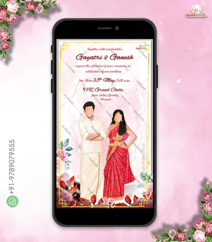 Caricature Based Cards, Digital Card/PDF, Save the date invitations, South Indian Cards, Traditional Cards