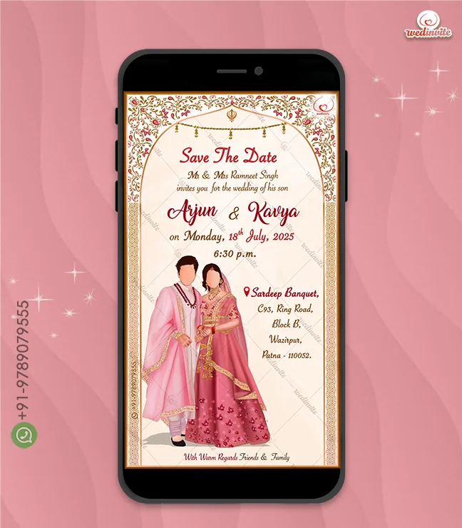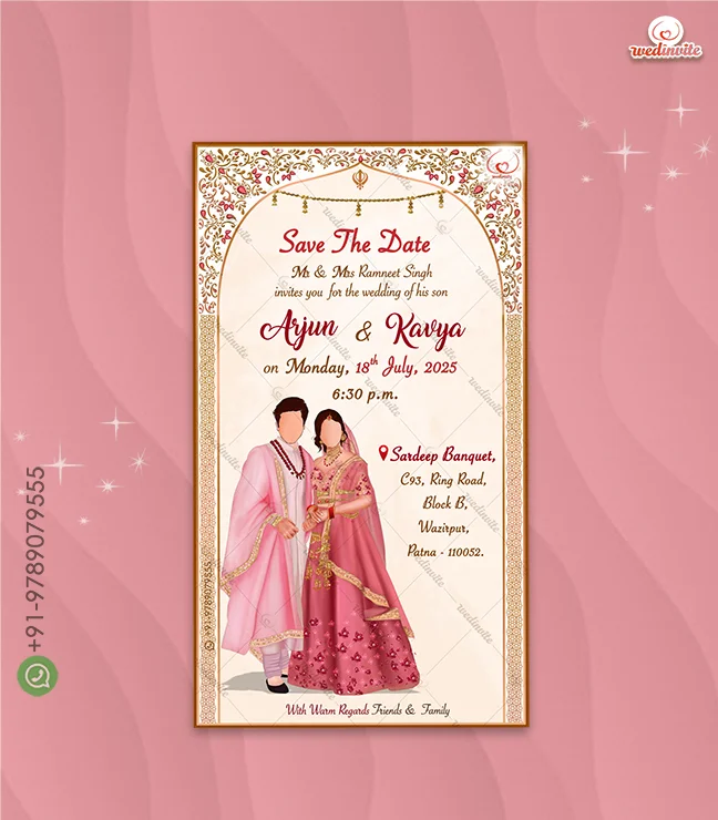 Categories: Caricature Based Cards, Digital Card/PDF, Engagement Invitation, Hindu Wedding invitations, North Indian Cards, Punjabi Traditional Invitations, Save the date invitations