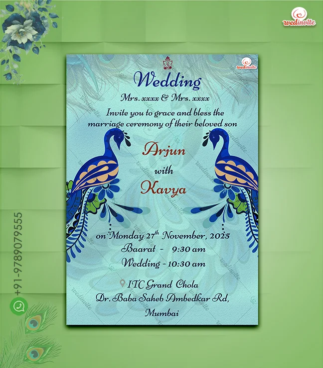 W1830 Peacock Theme Wedding Digital Card