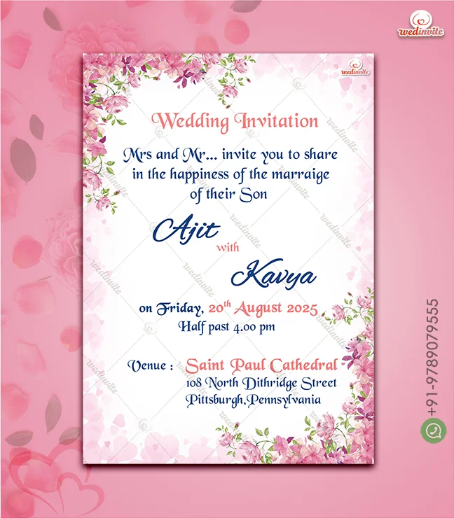 Hi 😊 Once you’ve chosen your digital card or video, please WhatsApp us at +91-9789079555 or email wedinvite@skillwillsol.com.