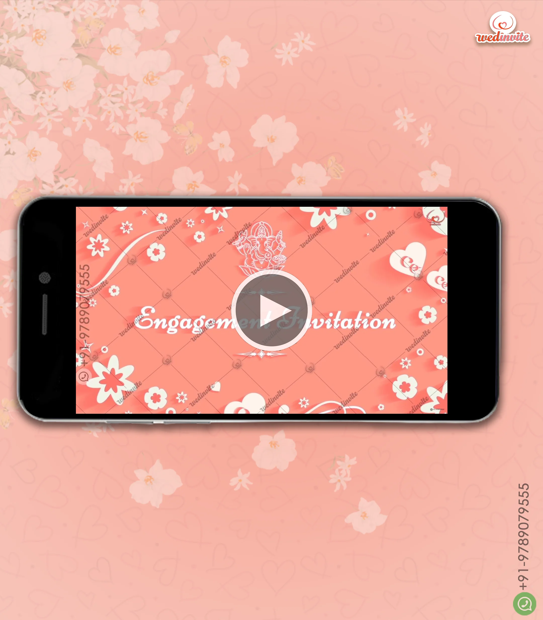 All videos include a small WedInvite logo and faded contact info on the last frame.