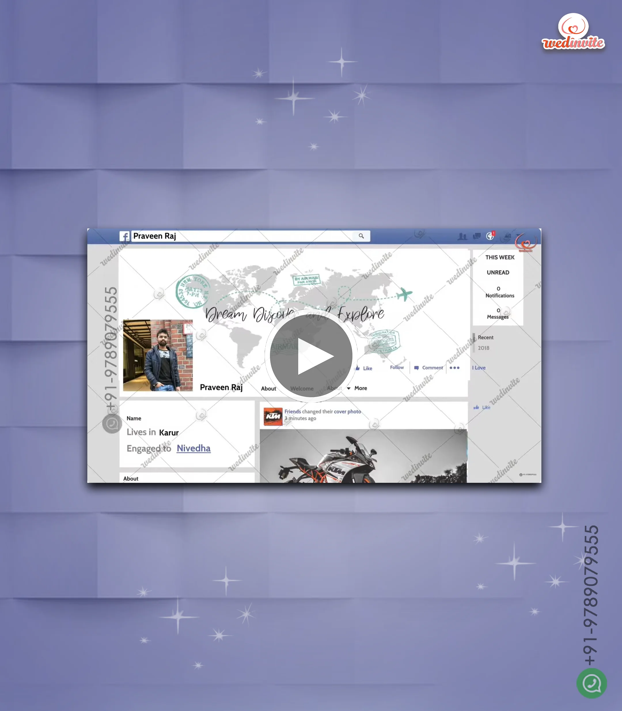W3335-Facebook Timeline Theme Wedding Video Invite