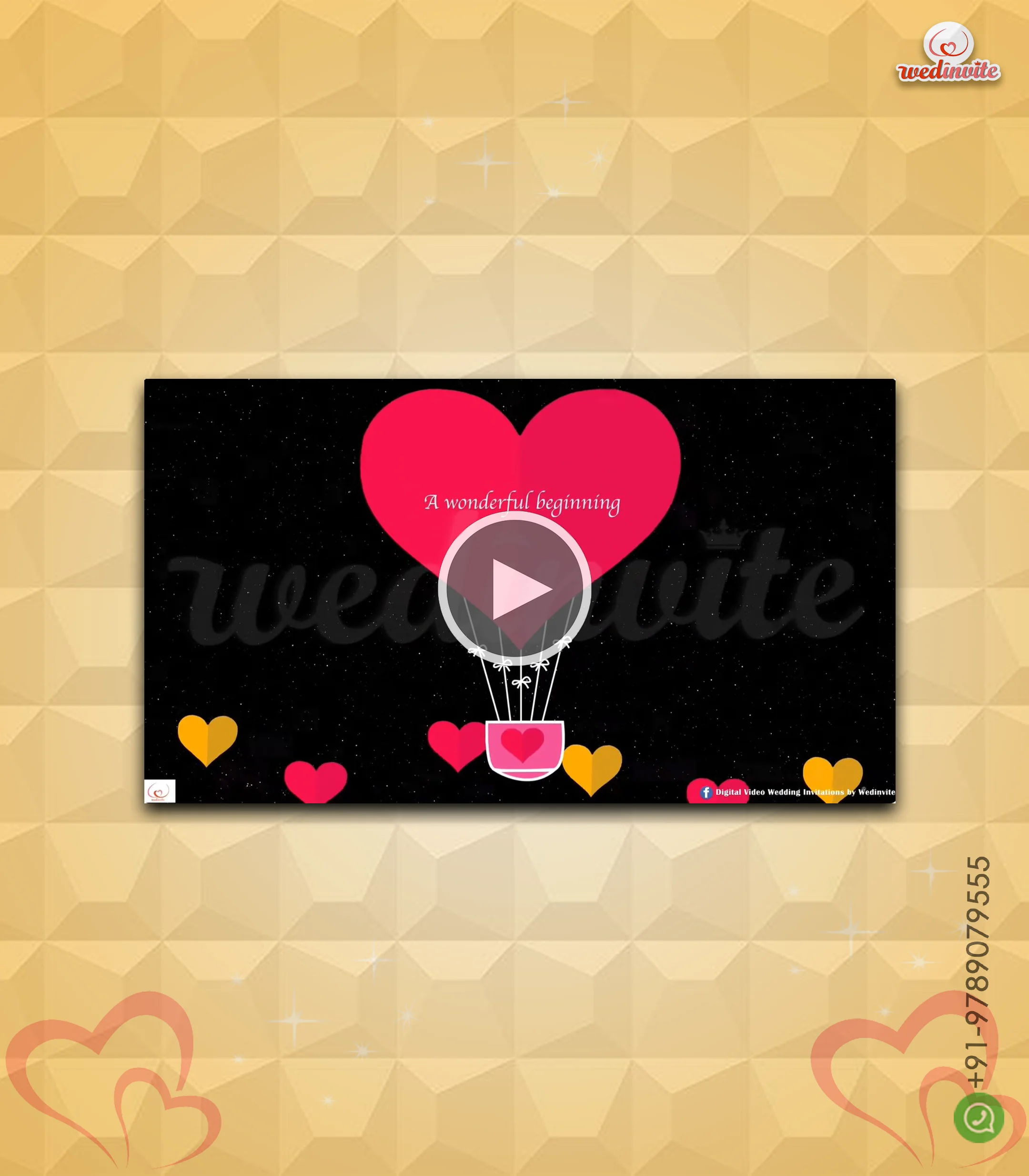 All videos include a small WedInvite logo and faded contact info on the last frame.