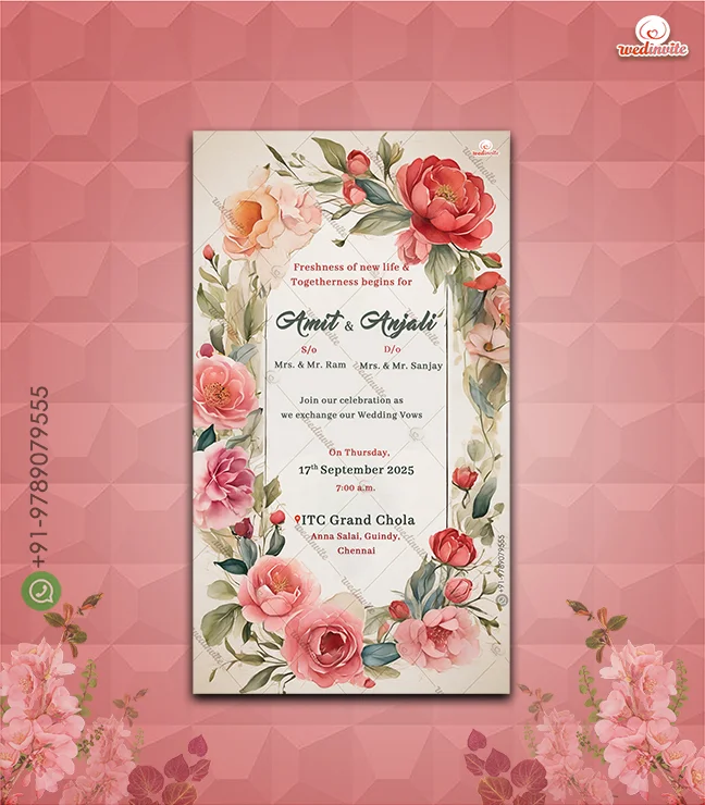 Categories: Digital Card/PDF, Floral Wedding Invitations, North Indian Cards, Save the date invitations, South Indian Cards, Traditional Cards