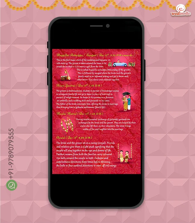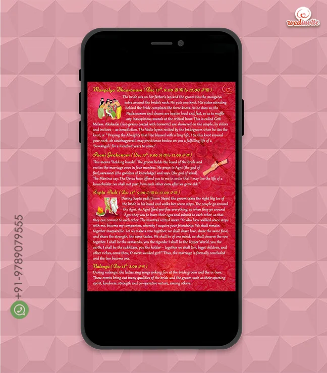 Hi 😊 Once you’ve chosen your digital card or video, please WhatsApp us at +91-9789079555 or email wedinvite@skillwillsol.com.