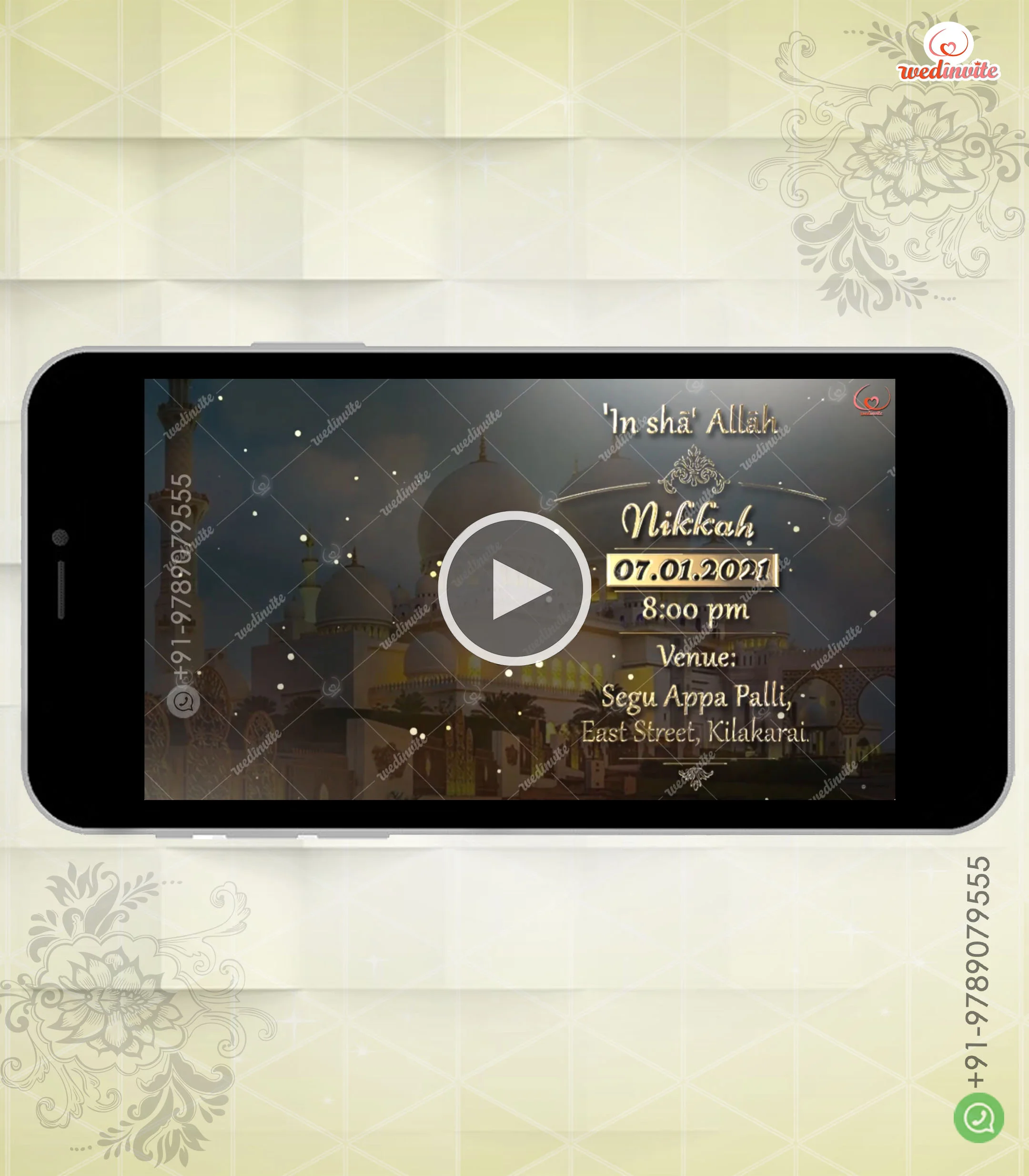 Elevate your wedding invitation experience with the Islamic Wedding Video Invite. Order now and let your wedding invitation video be the perfect introduction to your magical celebration. It leaves a lasting impression on all your guests. With our digital wedding invitation, share the joy of your union and the blessings of Allah.