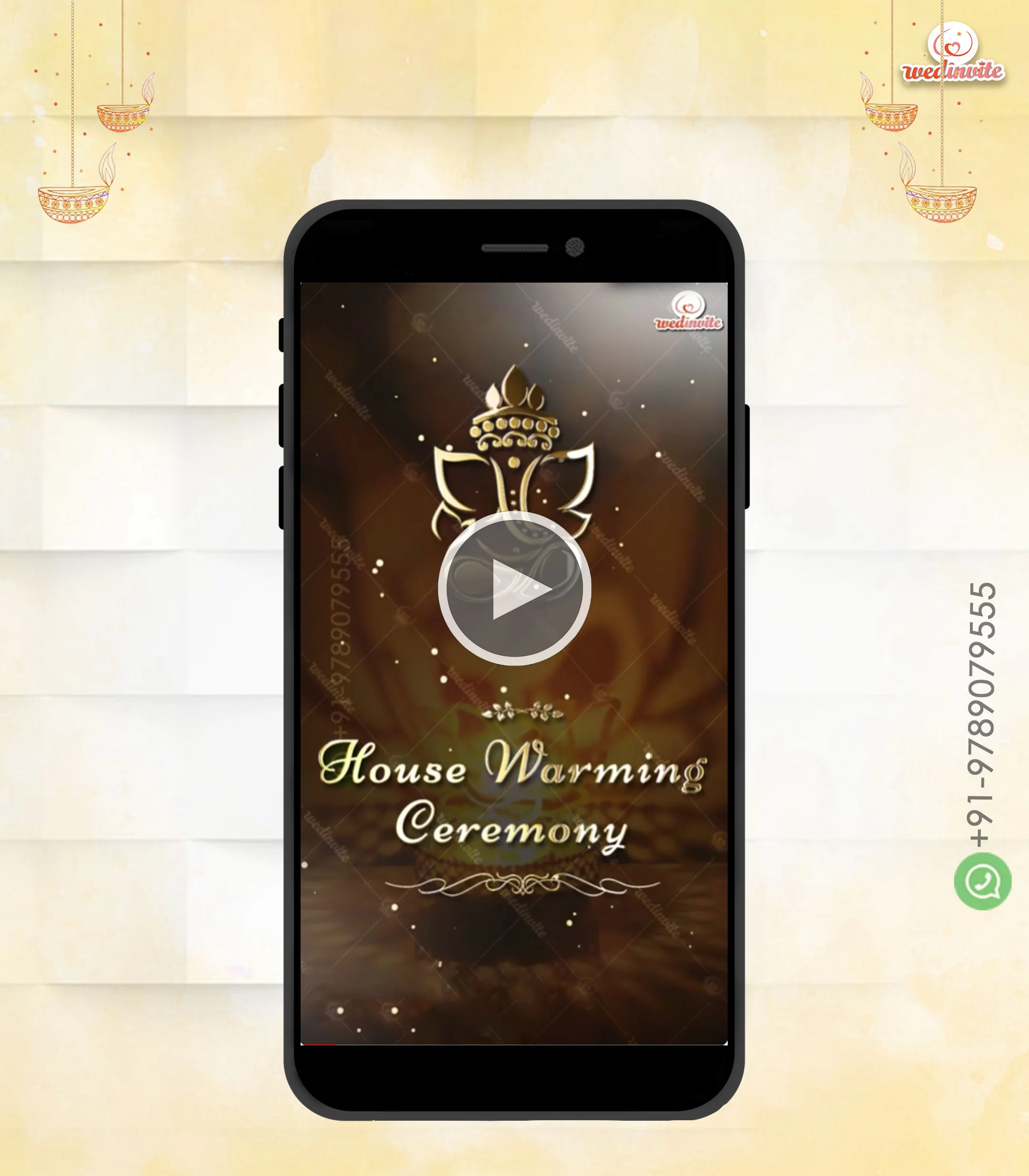 All videos include a small WedInvite logo and faded contact info on the last frame.