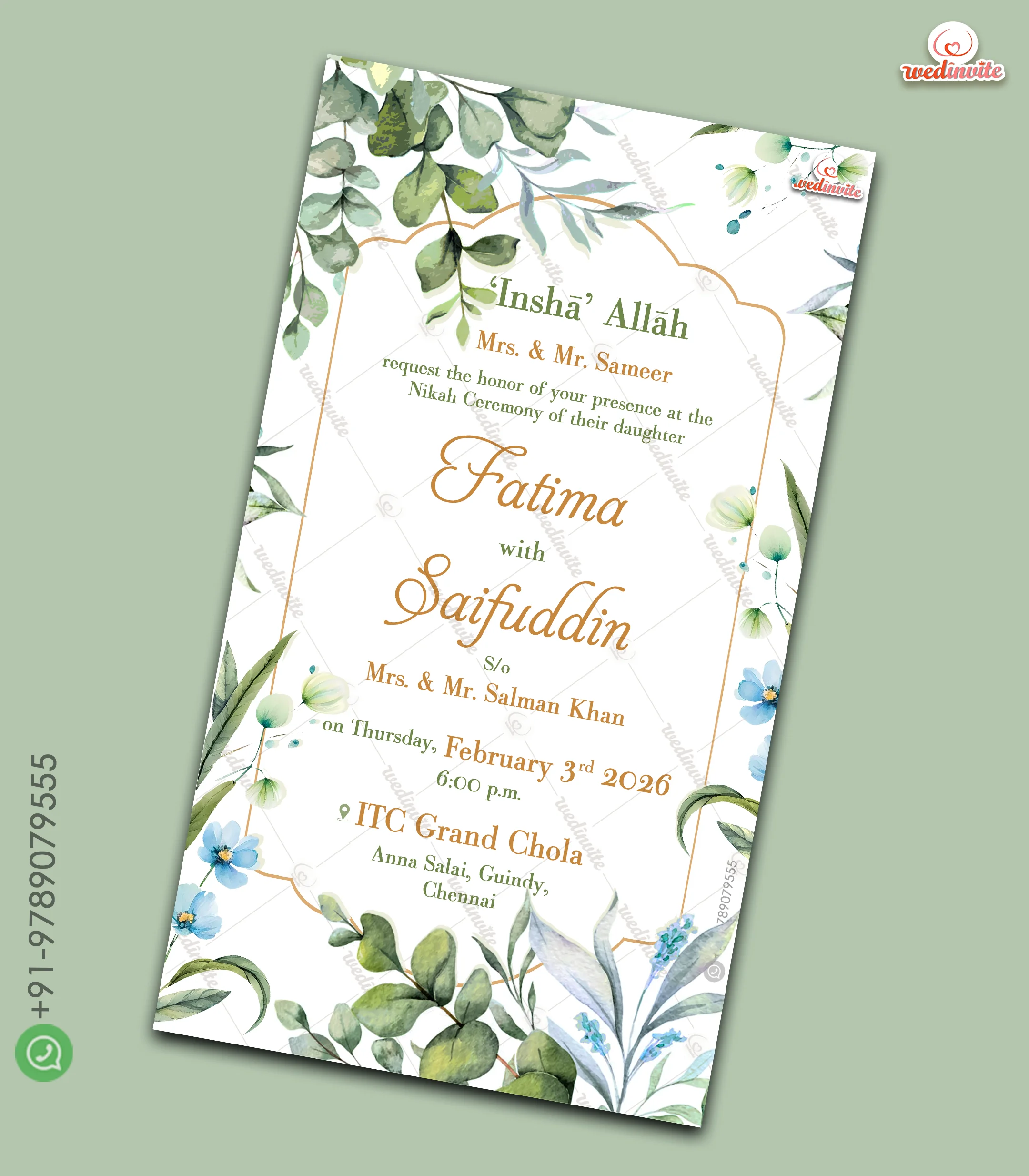 W4905 Elegant Green Theme Nikah Invite