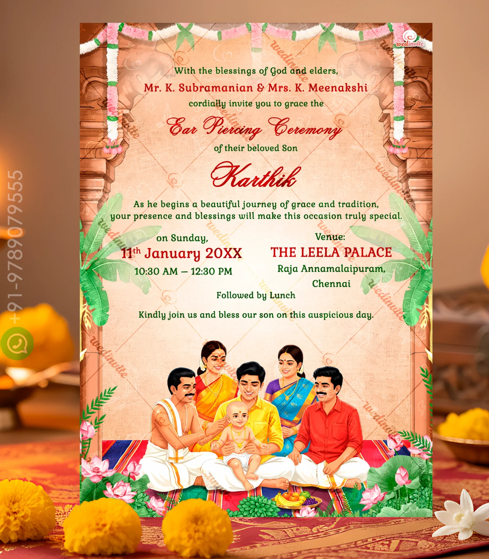 W8440 Traditional Pillar Theme EarPiercing Invitation