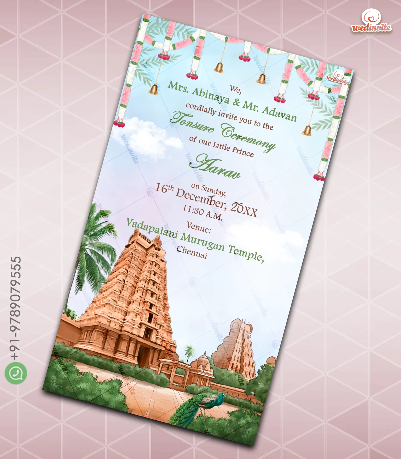 W9509 Temple Theme Tonsure Ceremony Invite